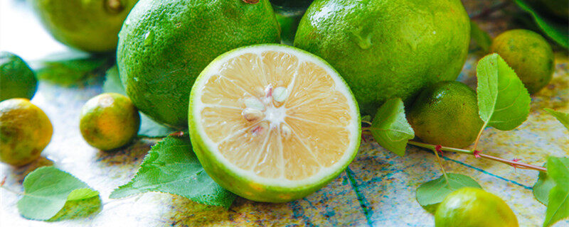 青柠果柄粗而短,果圆球形、椭圆形或倒卵形,径通常4~5厘米,果顶有乳头状短突尖,果皮薄,平滑,淡绿黄色,油胞凸起,瓢囊9~12瓣,果肉味甚酸;种子小且少,卵形,种皮平滑,子叶乳白色,花期3~5月,果期9~10月。