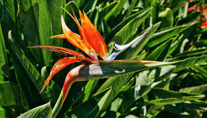 天堂鸟是典型的喜光类型花卉植物,缺少光照滋润,天堂鸟的观赏性加强,花朵就失去了独特的生长样式。日均受光时长在8小时以上为好,面对夏季的强光直射暴晒,则需要适当遮蔽,以免植株被晒伤。