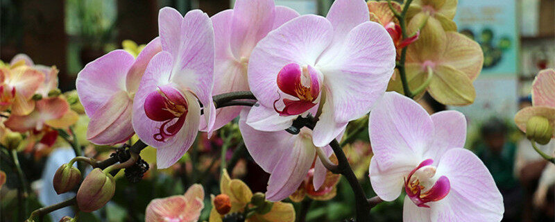 兰花(学名:Cymbidium ssp.):是单子叶植物纲、兰科、兰属植物通称。附生或地生草本,叶数枚至多枚,通常生于假鳞茎基部或下部节上,二列,带状或罕有倒披针形至狭椭圆形,基部一般有宽阔的鞘并围抱假鳞茎,有关节。总状花序具数花或多花,颜色有白、纯白、白绿、黄绿、淡黄、淡黄褐、黄、红、青、紫。