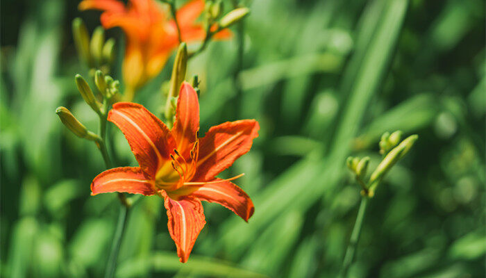 萱草花的花语是遗忘的爱、爱的忘却,寓意着忘记曾经的爱情,放下忧愁。萱草又称“宜子草”,属于百合科多年生草本植物。萱草花在中国被誉为“母亲花”。为橘红或橘黄色,在细长的枝顶端绽放。它会长出细长绿色的开花枝,花色橙黄,全国各地常见栽培。